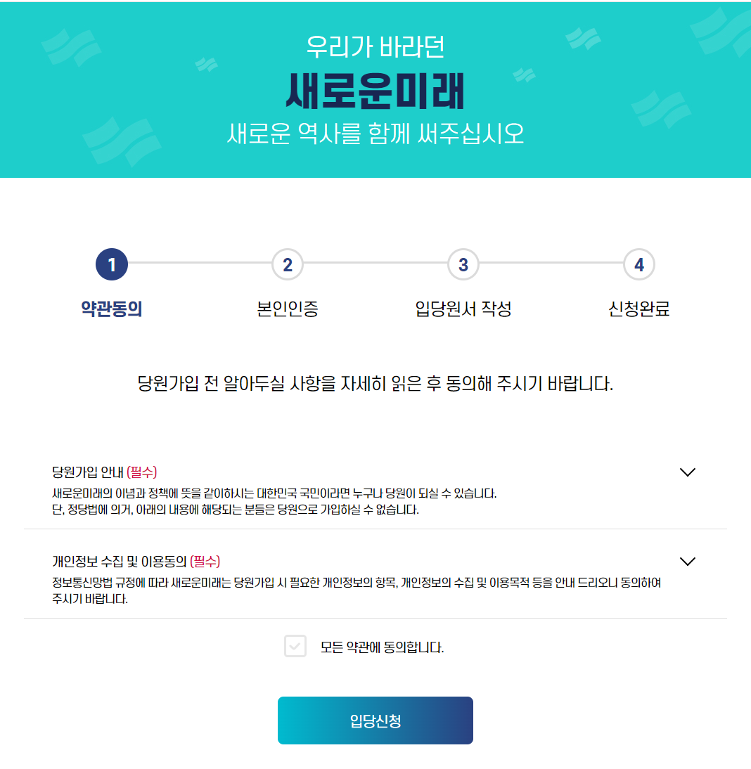 새로운미래의 당원 가입은 새로운미 홈페이지를 통해 가능 합니다. 간단하니 바로 당원가입을 원하시는 분은